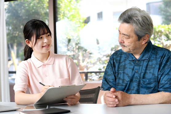 ご利用者やご家族の心身の状態や環境、生活歴などを把握し、お困りごとに対する解決方法を一緒に考えていきます。