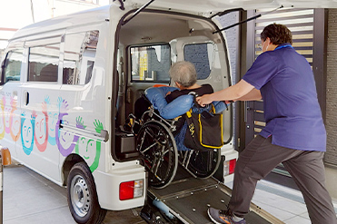さまざまなタイプの送迎車があり、車いすにもしっかり対応します。